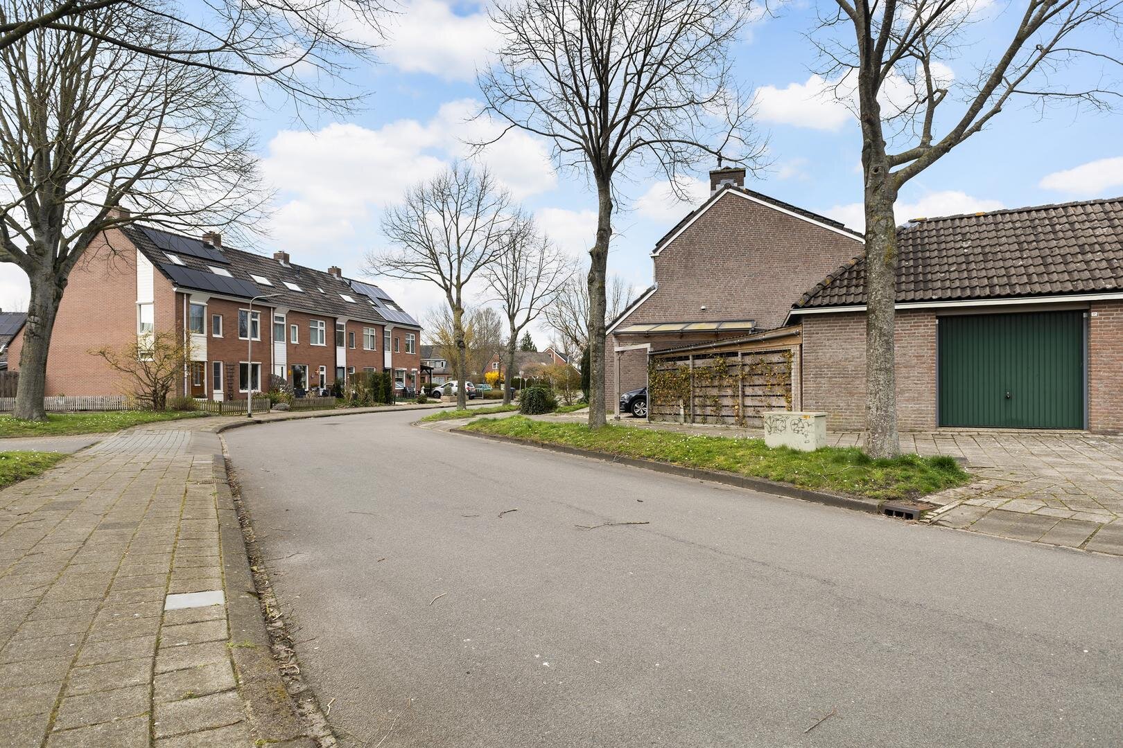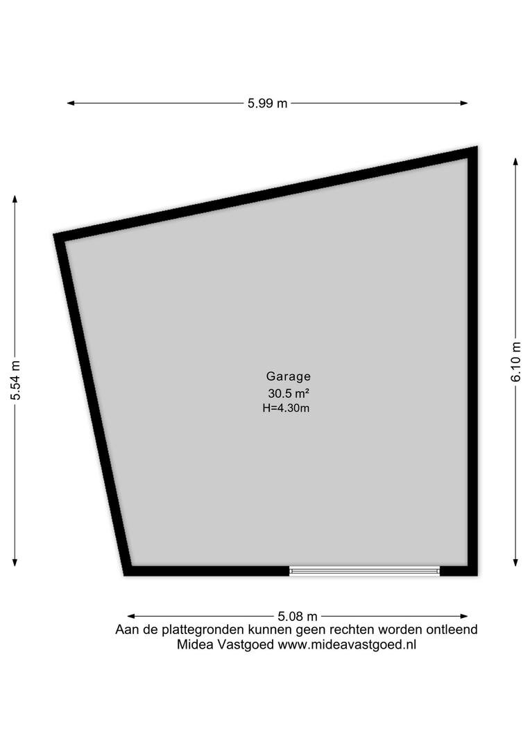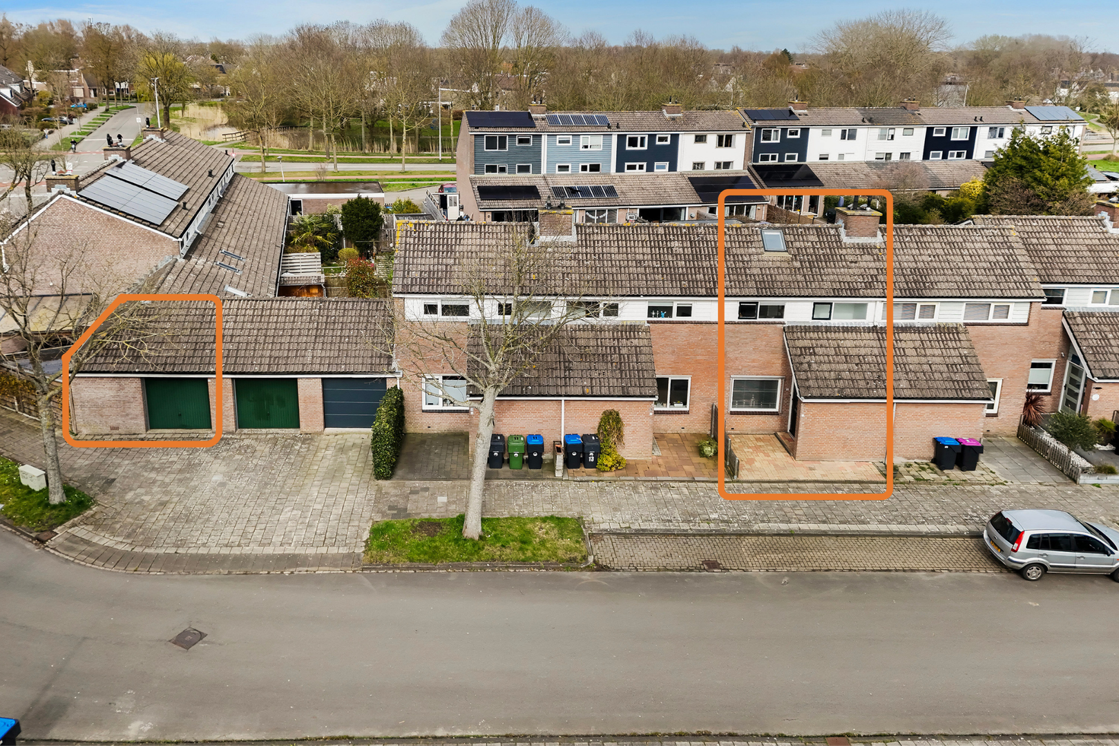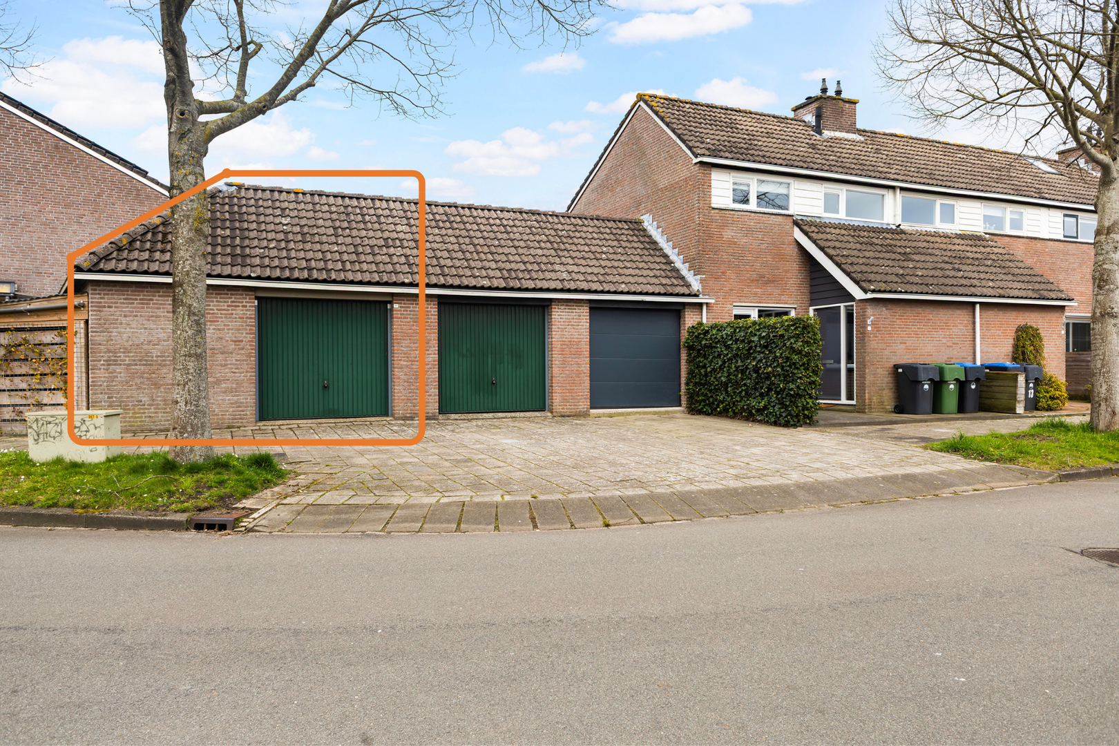 - grote garage op de hoek met puntdak (36 m² eigen grond)